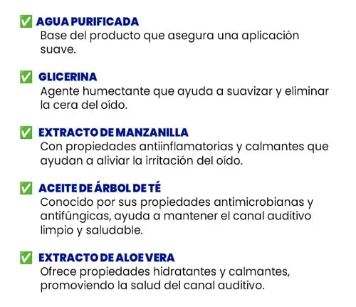 Limpieza Profunda y Segura: Disuelve la cera acumulada (cerumen) que causa bloqueos y pérdida de audición, sin usar hisopos dañinos.